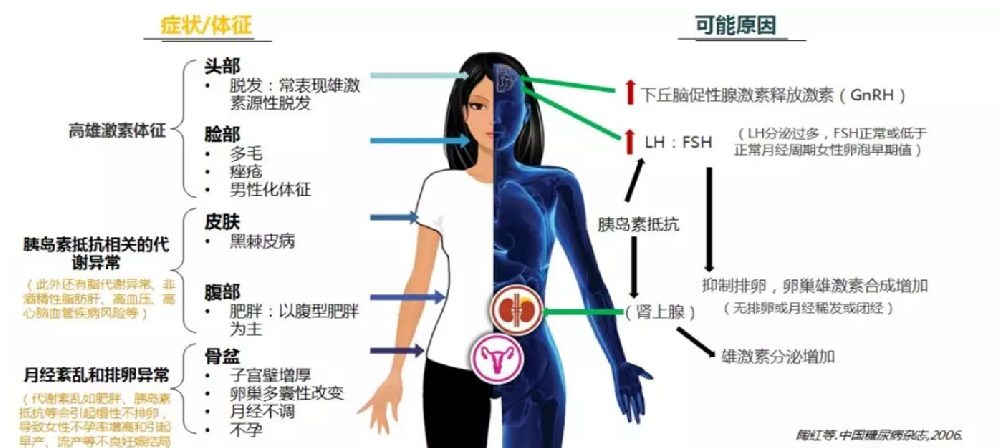 多囊卵巢综合征(polycystic ovary syndrome,PCOS) 是育龄期女性最常见的内分泌紊乱性疾病,发生率4%-12%。PCOS临床表现多样,常见月经异常(稀发或闭经)、多毛、座疮、肥胖、不孕等,远期并发症包括高血压、高血脂及心血管疾病、糖尿病(diabetes mellitus,DM)等生殖功能障碍和糖代谢异常。PCOS在临...